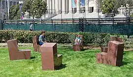 Six-Part Seating is a sculpture by Scott Burton, installed at the National Gallery of Art Sculpture Garden in Washington, D.C. The work, conceived in 1985 and fabricated in 1998,[1] consists of six polished red granite seats that can be arranged in a circle or side by side.[2] The seats weigh approximately 1500 pounds each. Visitors are welcome to sit on the seats.[3][4] The work was given to the National Gallery of Art by the Collectors Committee.[5]