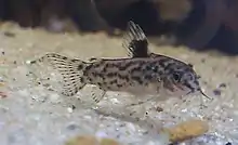 The sixray corydoras (Corydoras pauciradiatus) [3]or false corydoras is a tropical freshwater fish belonging to the Corydoradinae sub-family of the family Callichthyidae. It originates in inland waters in South America, and is found in the upper Araguaia River basin in Brazil.