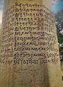 The Junagadh rock, which contains inscription of the earlier emperors, Ashoka and Rudradaman, has an inscription engraved on the orders of Skandagupta's governor Parnadatta. The inscription states that Skandagupta appointed governors of all provinces, including Parnadatta as the governor of Surashtra.[17] It is not clear if the verse refers to routine appointments made by the king, or his actions after a political turmoil resulting from a war of succession or invasion.[18] The inscription outlines several qualifications required to be the governor of Surashtra, stating that only Parnadatta met these requirements. Again, it is not clear if these were actual qualifications required to be a governor under Skandagupta's rule, or if the verse simply aims to eulogise Parnadatta.[17]