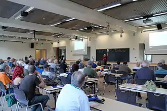 Hyman created the Skeptic's Toolbox in 1989 to teach people how to be better skeptics. He tells James Underdown that "we were putting out more fires by skeptics than by believers... they were going overboard". The first toolbox was in Buffalo, NY with himself, James Alcock and Steve Shaw (now called Banachek).[1][2] With the exception of one year when the toolbox was held in Boulder, Colorado, the toolbox has been held at the University of Oregon in Eugene.[3] In general, the faculty likes to keep the numbers at about 90 in order to give everyone personalized attention, and allow everyone the chance to participate. At the 1993 Toolbox, "More than a hundred people participated, from 19 states, Canada, and Hong Kong, and their enthusiasm continued to grow with each passing day, ending on the fifth day with what appeared to be a unanimous 'If only we had more time!'".[4]