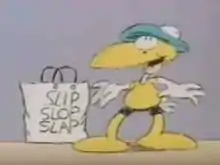Slip-Slop-Slap (originally Slip! Slop! Slap!) is a mnemonic slogan for reducing unhealthy sun exposure by slipping on a shirt or rash guard, slopping on sunblock, and slapping on a sun hat. It was prominent in Australia and New Zealand during the 1980s, originating as the jingle in a televised public service announcement in which an anthropomorphic mascot named Sid the Seagull would sing and dance to the phrase.[1]