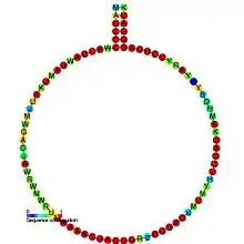 In molecular biology, Small nucleolar RNA R21 is a non-coding RNA (ncRNA) molecule which functions in the modification of other small nuclear RNAs (snRNAs). This type of modifying RNA is usually located in the nucleolus of the eukaryotic cell which is a major site of snRNA biogenesis. It is known as a small nucleolar RNA (snoRNA) and also often referred to as a guide RNA. snoRNA R21 belongs to the C/D box class of snoRNAs which contain the conserved sequence motifs known as the C box (UGAUGA) and the D box (CUGA). Most of the members of the box C/D family function in directing site-specific 2'-O-methylation of substrate RNAs.[1] Plant snoRNA R21 was identified in a screen of Arabidopsis thaliana .[2]