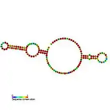 ![]() Predicted secondary structure and sequence conservation of SNORA63 | |