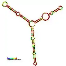 ![]() Predicted secondary structure and sequence conservation of SNORA74 | |
