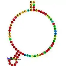 U38 is located in introns 4 and 5 of ribosomal protein S8 in human and in the homologous genes in mouse and cow.[2] U38 is predicted to guides the methylation of 2'-O-ribose residues in 28S ribosomal RNA (rRNA). The mouse homologue of U38 (MBII-329) has also been identified.[3]