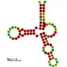 ![]() Predicted secondary structure and sequence conservation of SNORD71 | |