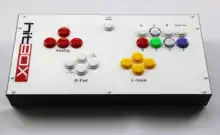 The Smash Box controller is a custom arcade controller designed by Dustin Huffer and developed by Hit Box from 2014 to 2017. Specifically designed for competitive play of Super Smash Bros. Melee, the Smash Box controller replaces the GameCube controller's analog stick with a button layout. This controller may allow more precise and rapid input, though it has a steeper learning curve than the traditional controller. Moreover, the Smash Box controller may have various health benefits, as it puts less stress on the hands of its user. The Smash Box is currently a legal controller for major Super Smash Bros. and fighting game tournaments, with it and other all-button controllers finding more acceptance and use throughout the communities.