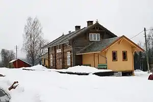 Snarum Station (originally Lofthus Station) is a railway station on the Krøder Line in Buskerud, Norway. It was opened on 28 November 1872 and located in the village Snarum. The station building was designed by Georg Andreas Bull in Swiss chalet style. On 26 November 1872, farmer Jørgen Rytterager was appointed the first station master of the station. The station was one of the stations on the Krøder Line with the most passenger and freight traffic. Passenger service was ceased on 19 January 1958, and freight traffic on 1 March 1985.