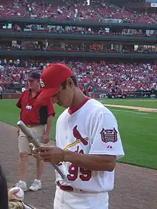 In 2006, Taguchi's playing time declined somewhat, his at-bat total falling to 316 from 396 the year before. However, Taguchi would make the playoff roster for the Cardinals for the third year in a row, and have a heroic postseason moment: on October 13, 2006, he hit the go-ahead home run off Billy Wagner in the top of the 9th inning of Game 2 of the NLCS. The home run gave the Cardinals a 7–6 lead in a game they would win 9-6.[1] Taguchi played in four of five games of the 2006 World Series for the Cardinals, hitting .182, and won a World Series ring as the Cardinals defeated the Detroit Tigers four games to one. Taguchi agreed to a one-year deal worth $925,000 with the St. Louis Cardinals for the 2007 season.