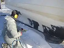Soda blasting is a mild form of abrasive blasting in which sodium bicarbonate particles are blasted against a surface using compressed air. It has a much milder abrasive effect than sandblasting. An early use was in the conservation-restoration of the Statue of Liberty in the 1980s.[1]