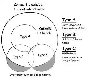 A useful way to understand sodalities, and their place in the Christian Church, is to divide the sodalities, pious associations and confraternities into three broad types:[2]