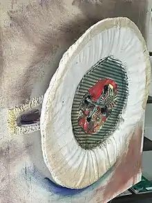 Soft sculpture was also a key feature during the 1970s in Post-Minimalist art.[4] Artists during this time would create sculptures using materials that they had around them.[4] A key artist during this time was Eva Hesse. One of Eva's most popular works does not have a title. It is composed of latex, string, rope and wire suspended from the ceiling.[5]