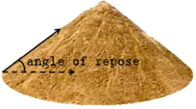 Soil is an assemblage of particles that have little to no cementation while rock (such as sandstone) may consist of an assembly of particles that are strongly cemented together by chemical bonds. The shear strength of soil is primarily due to interparticle friction and therefore, the shear resistance on a plane is approximately proportional to the effective normal stress on that plane.[3] The angle of internal friction is thus closely related to the maximum stable slope angle, often called the angle of repose.
