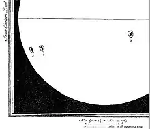 ![]() Drawing of a sunspot from 1774, illustrating the Wilson effect | |