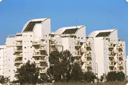 The use of solar energy began in Israel in the 1950s with the development by Levi Yissar of a solar water heater to address the energy shortages that plagued the new country.[1] By 1967 around 5% of water of households were solar heated and 50,000 solar heaters had been sold.[1] With the 1970s oil crisis, Harry Zvi Tabor developed the prototype of the solar water heater now used in over 90% of Israeli homes.[2] There are over 1.3 million solar water heaters installed as a result of mandatory solar water heating regulations.