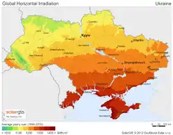 Solar power in Ukraine is obtained from photovoltaics or solar thermal energy.