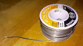 Solder (UK: /ˈsɒldə, ˈsəʊldə/;[1] NA: /ˈsɒdər/)[2] is a fusible metal alloy used to create a permanent bond between metal workpieces. Solder is melted in order to wet the parts of the joint, where it adheres to and connects the pieces after cooling. Metals or alloys suitable for use as solder should have a lower melting point than the pieces to be joined. The solder should also be resistant to oxidative and corrosive effects that would degrade the joint over time. Solder used in making electrical connections also needs to have favorable electrical characteristics.