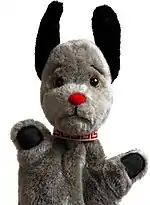 Sooty is a British children's television media franchise created by Harry Corbett incorporating primarily television and stage shows. The franchise originated with his fictional glove puppet character introduced to television in 1955, with the franchises focused around the adventures of the character – a mute yellow bear with black ears and nose, who is kind-hearted but also cheeky, performs magic tricks and practical jokes, and squirts his handler and other people with his water pistol, including on other television programmes the guest stars on. The franchise itself also includes several other puppet characters who were created for television, some of whom became the backbone to performances, and features additional elements including an animated series, two spin-off series for the direct-to-video market, and a selection of toy merchandising.