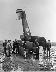 The Triplane's combat career was comparatively brief, in part because it proved difficult to repair.[28] The fuel and oil tanks were inaccessible without dismantling the wings and fuselage; even relatively minor repairs had to be made at rear echelon repair depots. Spare parts became difficult to obtain during the summer of 1917, resulting in the reduction of No. 1 Naval Squadron's complement from 18 to 15 aircraft.[34] According to Bruce, it is plausible that squadrons were slow to refit their Triplanes with the improved tailplane due to a lack of available kits for doing so.[35]