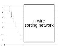 Sorting networks can be implemented either in hardware or in software. Donald Knuth describes how the comparators for binary integers can be implemented as simple, three-state electronic devices.[1] Batcher, in 1968, suggested using them to construct switching networks for computer hardware, replacing both buses and the faster, but more expensive, crossbar switches.[3] Since the 2000s, sorting nets (especially bitonic mergesort) are used by the GPGPU community for constructing sorting algorithms to run on graphics processing units.[4]