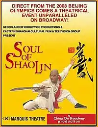 Soul of Shaolin was a theatrical event presented on Broadway by Nederlander Worldwide Entertainment to coincide with the celebration of the Lunar New Year in January 2009. The first production from the People’s Republic of China ever to appear on Broadway,[1] its story is told through a display of Chinese martial arts, particularly Shaolin Kung Fu, handed down through generations in the Shaolin Monastery, a Chán Buddhist temple at Song Shan near Dengfeng in China.