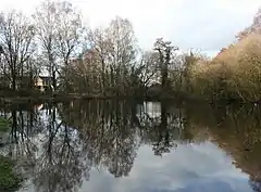 The wetland habitat at Sound Heath is very diverse, ranging from small ponds and damp hollows to Sound Pond (SJ619480), which is nearly 60 metres in length.[14] Water bodies are found both in the sunny open heath areas and within the woodland.[2] As the pools result from the extraction of sand, they have a different ecology from the more common marl-pits, as well as from the glacial kettle holes and salt-subsidence flashes of the Cheshire Plain. Most have reached the late succession (mature) stage.[10] Although the encroachment of trees on the common has led to some ponds becoming infilled with leaf debris, reducing the number of permanent pools, the resultant seasonal wet areas support several rare plant species.[13]