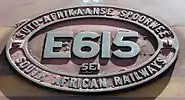 The main picture shows no. E610 in the SAR Gulf Red and whiskers livery which was introduced in 1960 and in which the whole series was delivered. No. E613, displayed below in the pre-1960 SAR green and whiskers livery with incorrectly curtailed side-stripes and Bellville Depot’s trademark yellow cowcatchers, was repainted green in the early 1990s for use on Union Limited tourist trains.[3]