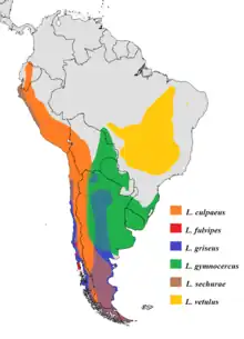 Lycalopex sechuraeSechuran foxwest-central, northwestern Peru, including the Sechura Desert, and southwestern Ecuador