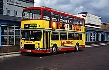 South Yorkshire Transport began the process of branding its operations to 'Mainline' in June 1989, adopting a predominantly yellow livery with regional identifiers for its Sheffield, Doncaster and Rotherham divisions initially as route branding.[15][16] These regional identifiers were then dropped in 1992 and the Mainline name was adopted across the company in a £750,000 pre-privatisation publicity drive, with a new red and yellow livery combining the blue and silver elements of the Doncaster and Rotherham liveries being introduced to the bus fleet.[17] On 7 June 1993, prior to South Yorkshire Transport's sale into privatisation, the company was renamed 'Mainline Group Ltd'.[3]: 139