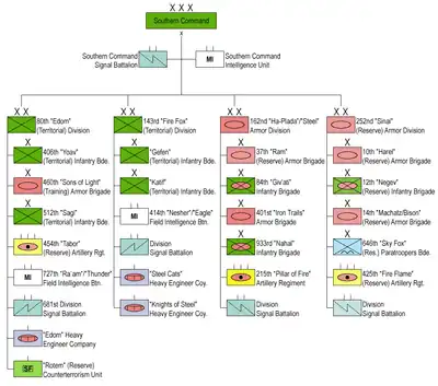 The Southern Command (Hebrew: פיקוד דרום, transliterated: Pikud Darom), often abbreviated to Padam (פד"מ), is a regional command of the Israel Defense Forces (IDF). It is responsible for the Negev, the Arava, and Eilat. It is currently headed by Aluf Eliezer Toledano.