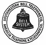 Southwestern Bell Telephone traces its roots to The Missouri and Kansas Telephone Company, which was founded in 1882.[1][2] It was consolidated under a single management unit of the Bell System with Southwestern Telegraph and Telephone Company of Texas-Arkansas, Pioneer Telephone and Telegraph Company of Oklahoma, and The Bell Telephone Company of Missouri—also called The Missouri Bell Telephone Company—on March 1, 1912. These companies comprised the "Southwestern System" of the Bell System. The latter three companies were legally merged into Missouri and Kansas Telephone Company in 1917, which was renamed Southwestern Bell Telephone Company.[3]