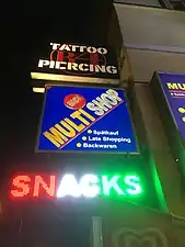 Translating literally to 'late purchase', Spätis mostly sell alcohol and tobacco but may also sell groceries or everyday items. Some shops may also offer internet access,[3] a postal service for retail, and usually feature small benches for clients to sit on while drinking beer.[4] Due to the invention of mobile web, many internet cafés have since extended their range of products to function as a Späti.[5] Most shops are run by migrant families of Turkish, Arabian, Vietnamese and otherwise Asian origin and are a part of the culture of Berlin's local neighbourhoods known as "Kiez".[6] Similar kinds of shops with different regional names are found in the Ruhr area, the Rhineland, Hanover and Hamburg.