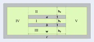 If w ≫ h1, h2 ≫ t, then the field in region IV and V and can be ignored.