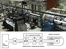 The workhorse for hypervelocity dust impact experiments is the electrostatic dust accelerator.[11] Nanometer to micrometer sized conducting dust particles are electrically charged and accelerated by an electrostatic particle accelerator to speeds up to 100 km/s. Currently, operational dust accelerators exist at IRS[12] in Stuttgart, Germany (formally at Max Planck Institute for Nuclear Physics in Heidelberg[13]), and at the Laboratory for Atmospheric and Space Physics (LASP) in Boulder, Colorado.[14] The LASP dust accelerator facility has been operational since 2011, and has been used for basic impact studies, as well as for the development of dust instruments. The facility is available for the planetary and space science communities.[15]