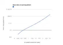 For rotating tethers not significantly affected by gravity, the thickness also varies, and it can be shown that the area, A, is given as a function of r (the distance from the centre) as follows:[35]