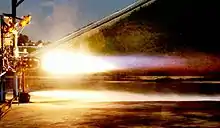 Most rocket engines are internal combustion heat engines (although non combusting forms exist). Rocket engines generally produce a high temperature reaction mass, as a hot gas. This is achieved by combusting a solid, liquid or gaseous fuel with an oxidiser within a combustion chamber. The extremely hot gas is then allowed to escape through a high-expansion ratio nozzle. This bell-shaped nozzle is what gives a rocket engine its characteristic shape. The effect of the nozzle is to dramatically accelerate the mass, converting most of the thermal energy into kinetic energy. Exhaust speed reaching as high as 10 times the speed of sound at sea level are common.