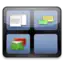 Function-key combinations can also be configured to activate the full-screen Spaces grid view, switch between spaces directionally, or switch directly to a specific space by number. A function allows applications or windows to be moved into (or through) adjacent spaces by dragging and holding the window (or document) at the edge of the screen. During a transition to a new space, a small, translucent image representing the Spaces grid configuration will be shown in the center of the screen for a few seconds, with arrows representing the movement, and the active space highlighted.
