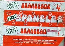 Spangles was a brand of boiled sweets manufactured by Mars Ltd in the United Kingdom from 1950 to the early 1980s.[1] They were sold in a paper packet with individual sweets originally unwrapped but later cellophane wrapped. They were distinguished by their shape which was a rounded square with a circular depression on each face.