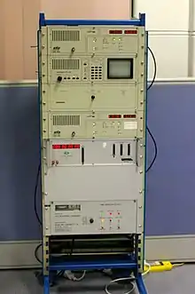 In 1935, Soviet Central Scientific Research Institute of Communications received a government order to design the "Speaking Clock" for Moscow City Telephone Network.[29][30] "Speaking Clock" was constructed based on cinematic techniques[30] and consists of discs with pulse-density modulation optical marks on photographic tapes, photocell with actuator, and audio tube amplifier.[31] On May 14, 1937 "speaking clock" connected to Moscow City Telephone Network for test operation and it was reachable on the numbers Russian: "Г 1-98-48" and Russian: "Г 1-98-49".[29][30][31] It was speaking with the recorded voice of Soviet actor and broadcaster Emmanuil Tobiash.[29][30][31] In 1937, the first cities to be equipped with this devices were Moscow and Leningrad.[32]