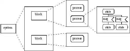 An SDL system is made of functional blocks and each block can be further decomposed in sub-blocks. The lowest level block is composed of one process or several processes described as finite state machines.