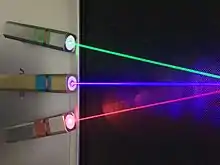 A spectral color is a color that is evoked by monochromatic light, i.e. either a single wavelength of light in the visible spectrum, or a relatively narrow band of wavelengths (e.g. lasers). Every wavelength of visible light is perceived as a spectral color; when viewed as a continuous spectrum, these colors are seen as the familiar rainbow.