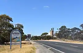 ![]() Entering Speed from the north via the Sunraysia Highway, 2018. Note the sign reads "Welcome to Speed. Please slow down" | |||||||||