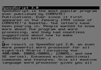 - The SpeedScript Family; Pg 71 May 1987 Compute!'s Gazette https://archive.org/details/computes.gazette/Compute_Gazette_Issue_47_1987_May/page/n71/mode/2up