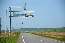 Speed limits for expressways are set at 100 km/h (62 mph) or lower speed. The speed limit is set with respect for the lowest "structure compatible speed" (構造適合速度, kōzō tekigō sokudo) criteria below, that is based on design speed.[11] It doesn't mean that speed limit should be set in units of 20 km/h (12 mph), but 70 km/h (43 mph) speed limit is not so common except two-lane expressways and there is no 90 km/h (56 mph) speed limit.