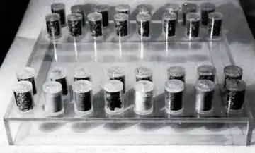 As well as Spice Chess, the series includes Sound Chess (different objects hidden in identical sealed boxes), Grinder Chess (a series of tactile drill bit polishers), Weight Chess (different weights hidden in sealed boxes), Nut & Bolt Chess (the only known example having been lost [4]), Jewel Chess, (made from different fake jewels) and Smell Chess (different liquids in vials). All of these sets were advertised for sale in Maciunas' Fluxus shop in SoHo, March 1965.[4][11]