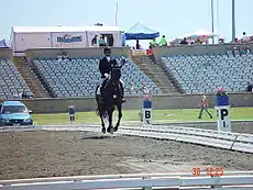 Notable tent peggers from Pakistan include Malik Ata Muhammad Khan, Khan Qamar Zaman Khan, Mian Javed Akhtar Gujjar, Amer Munawer, Shahbaz Qamar, Ch Rashid Mehmood, Haroon Bandial, Ashraf Hayat Gondal and Raja Zarrar Sajjad. Malik Ata Muhammad Khan is currently serving as Vice President in the International Tent Pegging Federation.[16] Malik Ata Muhammd Khan is one of the founders of International Tent Pegging Federation to address the Fédération Equestre Internationale (FEI).[17]