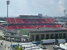 - Lamport Stadium (practice field for the Argonauts) also neighbours Exhibition Place in Toronto's West End; within a 9-minute walking distance from BMO Field via Liberty Village.[8]