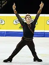 The spreadeagle position is frequently seen in various fields of human activity, particularly sports. It is commonly used in Olympic weightlifting, cheerleading, freestyle skiing, gymnastics, basketball, swimming and dance such as contemporary ballet. The spread eagle in figure skating is one of the moves in the field which makes the sport particularly associated with the position. It is also practiced in sky diving and appears in rock climbing and freestyle motocross.[1]