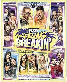 Spring Breakin' is an annual professional wrestling television special produced by WWE. The inaugural Spring Breakin' event was held as a special episode of NXT, on May 3 and took place at NXT's home base of the WWE Performance Center in Orlando, Florida.[1] On the April 11, 2023, episode of NXT, it was announced that the second Spring Breakin' would take place on April 25, 2023, thereby establishing Spring Breakin' as an annual Spring event for NXT.[2][3]