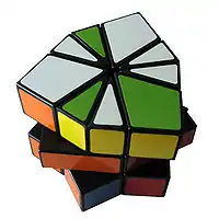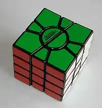 The Super Square One is a 4-layer version of the Square-1. Just like the Square-1, it can adopt non-cubic shapes as it is twisted. As of 2009, it is sold by Uwe Mèffert in his puzzle shop, Meffert's.